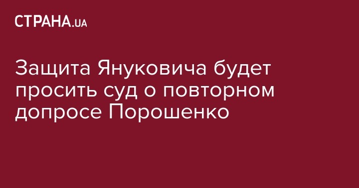 Защита экс-президента Виктора Януковича, который обвиняется в госизмене, намерена просить суд повторно допросить президента Петра Порошенко как свидетеля. Об этом сообщают "Украинские новости".