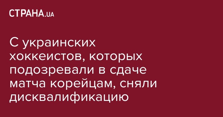С двух игроков национальной сборной Украины по хоккею Эдуарда Захарченко и Владимира Вариводы сняли дисквалификацию в рамках дела о возможном договорном характере матча Украина - Южная Корея. Об этом сообщает официальный сайт ИИХФ.