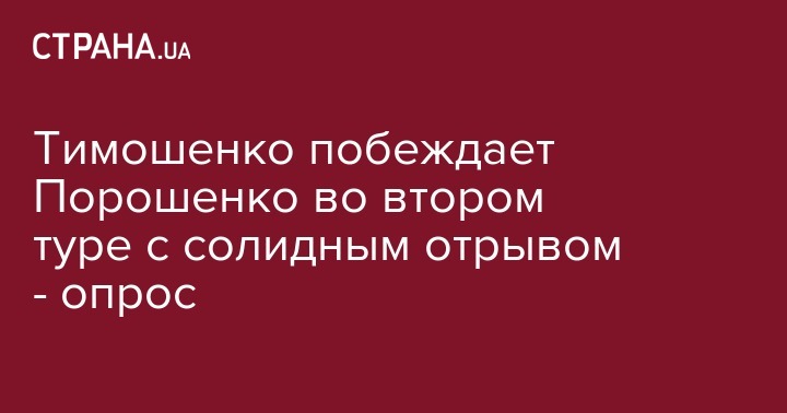 Тимошенко побеждает Порошенко во втором туре с солидным отрывом - опрос