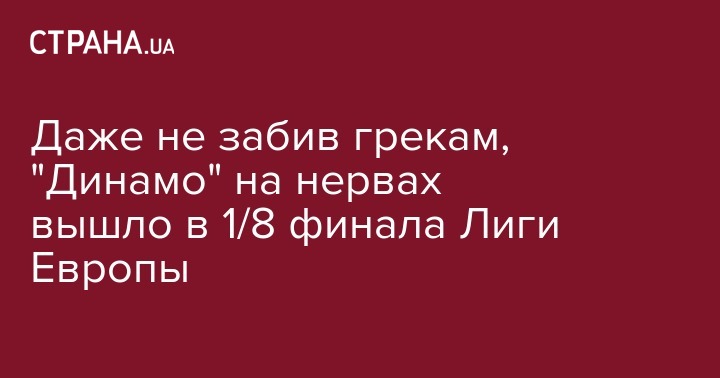 Киевское "Динамо" одолело греческий АЕК в стадии плей-офф Лиги Европы и пробилось в 1/8 финала.