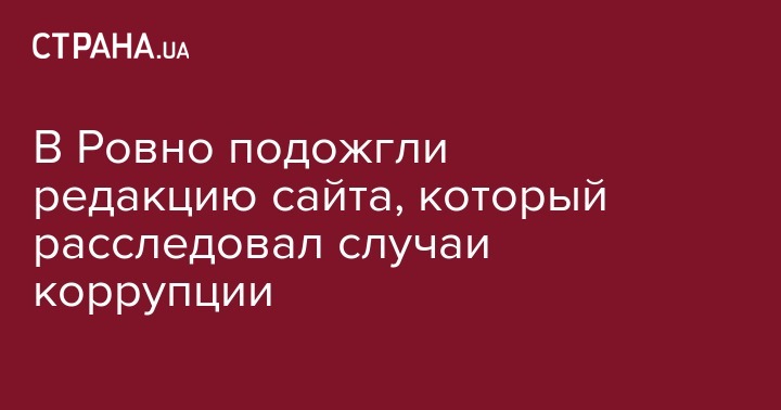 В Ровно подожгли помещение редакции информационного портала "Четвертая власть", который специализируется на расследованиях коррупции в местных органах власти.