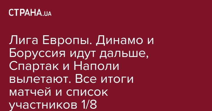 Лига Европы. Динамо и Боруссия идут дальше, Спартак и Наполи вылетают. Все итоги матчей и список участников 1/8