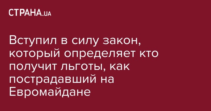 В Украине вступил в силу Закон, который определяет статус пострадавших участников Евромайдана в 2014 году, атошников и членов семей погибших. Об это сообщает "ЮрЛига".