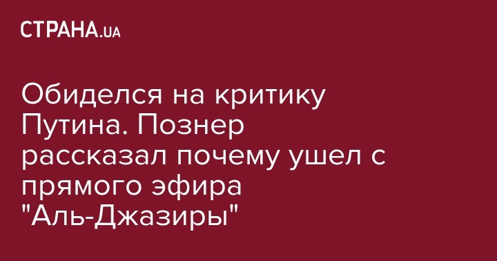 Обиделся на критику Путина. Познер рассказал почему ушел с прямого эфира "Аль-Джазиры"