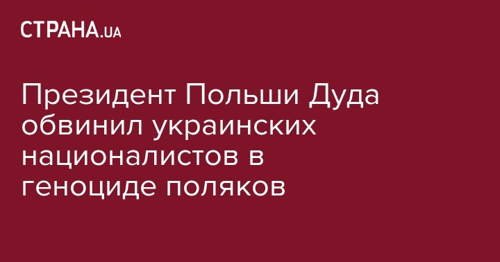 Президент Польши Анджей Дуда обвинил украинских националистов в геноциде поляков. При этом он заявил, что поляки стремятся к хорошим отношениям с украинцами. Об этом пишет "Европейская правда" со ссылкой на Niezalezna.