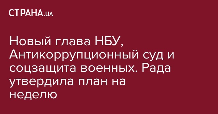 Новый глава НБУ, Антикоррупционный суд и соцзащита военных. Рада утвердила план на неделю