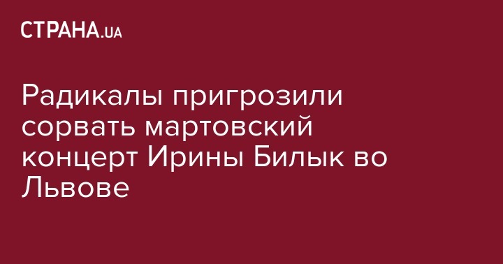 Радикалы рассказали о своих планах помешать концерту Ирины Билык, который назначен на 6 марта 2018 в театре оперы и балета во Львове. Они намерены не пустить зрителей внутрь.