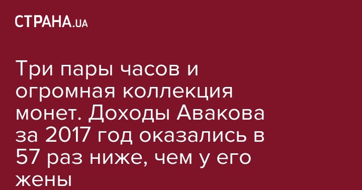 Также в его собственности находятся трое часов (в том числе марки Rolex, Vacheron Constantin, Jaeger LeCoultre). Авакову принадлежит коллекция медных, бронзовых, серебряных и золотых монет 16-21 веков из Украины, а также территорий Российской, Австро-Венгерской, Римской империй 2 ст. к н.е. - 20 ст. н.е. в количестве 2652 монеты.