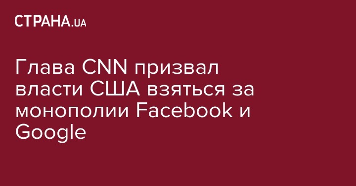 Глава американского телеканала CNN Джефф Цукер призвал власти США присмотреться к Facebook и Google. Он также назвал их монополиями.