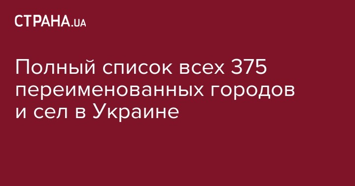 Всего переименованы 375 населенных пунктов и районов. Больше всего переименований будет в Днепропетровской области - здесь сменят 42 названия. В Одесской области декоммунизируют 31 название, в Полтавской и Харьковской - по 24, в Черниговской - 20, в Запорожской - 19.
