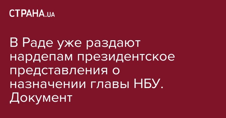 Народным депутатам уже раздают президентское представление на назначение главой НБУ Якова Смолия. Об этом сообщает из Рады корреспондент "Страны".