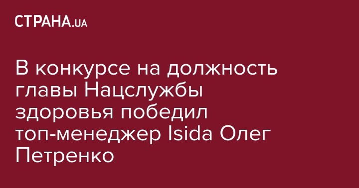 Победителем конкурса на должность главы Национальной службы здоровья Украины (НСЗУ) стал заместитель гендиректора по вопросам стратегического развития ООО "Isida-IVF" Олег Петренко.