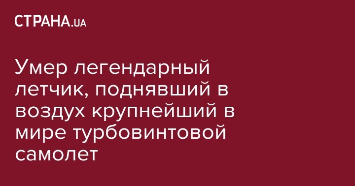 "Госпредприятие "Антонов" с глубоким прискорбием сообщает, что 27 февраля 2018 года на 89-м году ушел из жизни заслуженный летчик-испытатель СССР, герой Советского союза, легенда мировой авиации Юрий Владимирович Курлин (17.09.1929 г.р.)", - отмечается в сообщении.