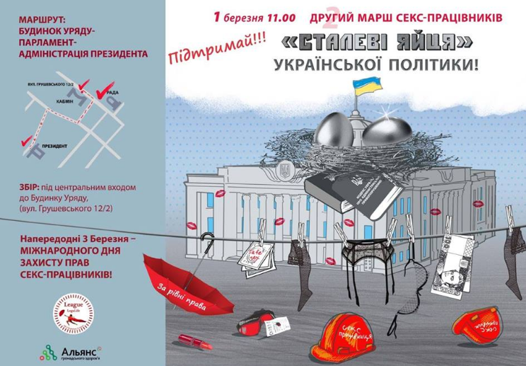 В четверг, 1 марта, в Киеве состоится второй марш секс-работников - "Стальные яйца украинской политики".