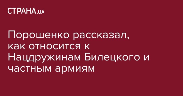 "Свой сегодняшний день, я начал в госпитале МВД, куда я приехал проведать нацгвардейцев и полицейских, которые пострадали в столкновениях под Верховной Радой. Это был жест моей поддержки. Когда вы видели Национальные дружины (подразделения Национального корпуса Андрея Билецкого - Прим.Ред.) на Крещатике, чувствовали ли вы себя безопаснее? Вчера под ВР власть и полиция действовала адекватно, а провокаторы нет. Потому они должны нести ответственность в суде. Но если кто-то будет использовать незарегистрированное оружие... За это должна быть необратимая ответственность", - заявил президент, отвечая на вопрос журналиста Дмитрия Гордона о том, может ли государство навести порядок в стране с незаконными вооруженными формированиями.