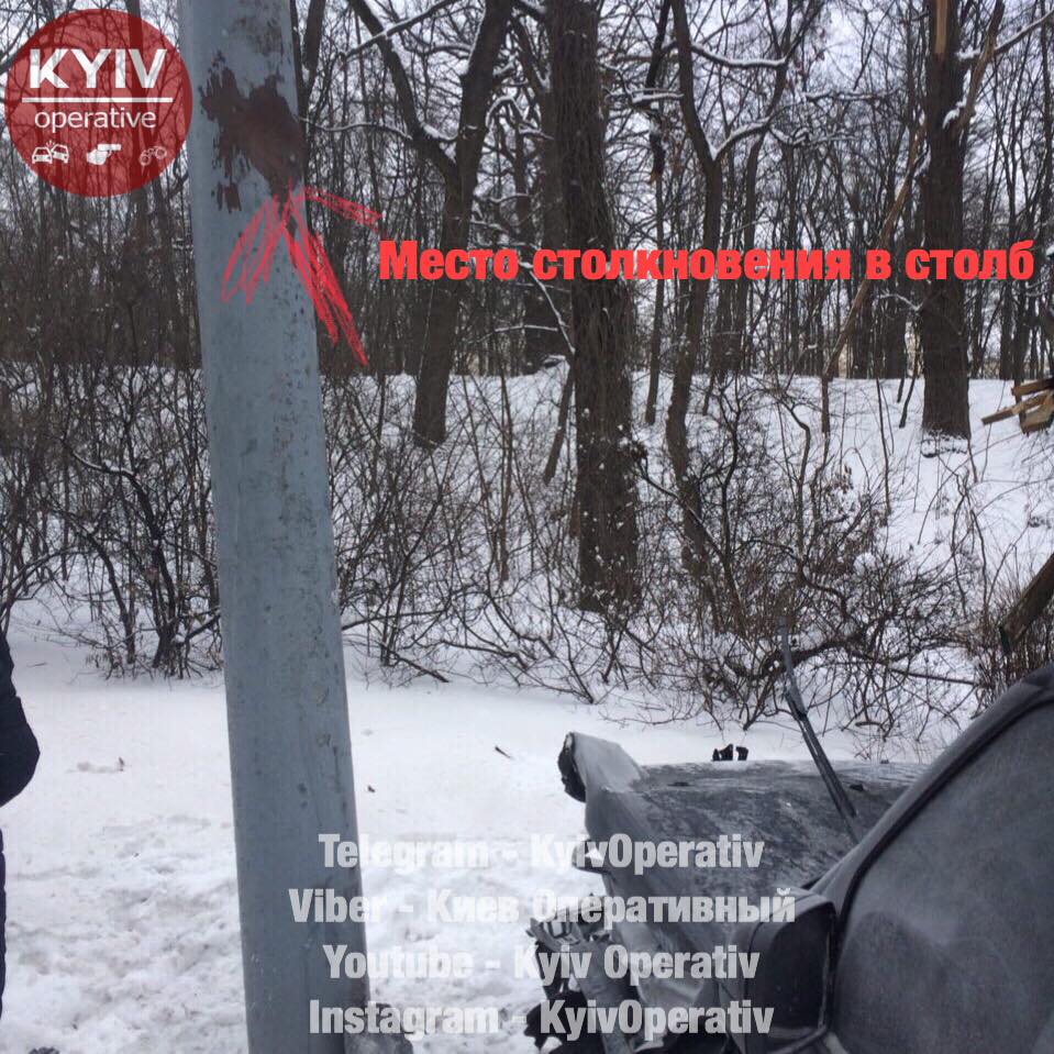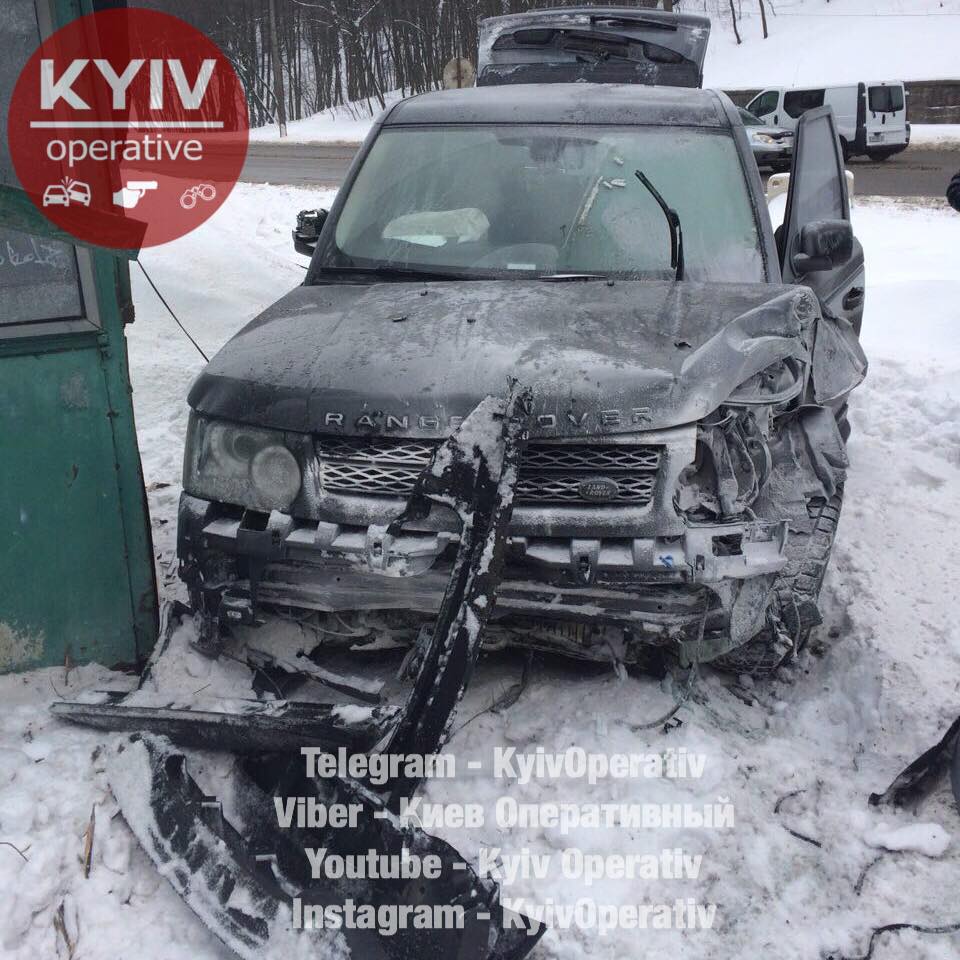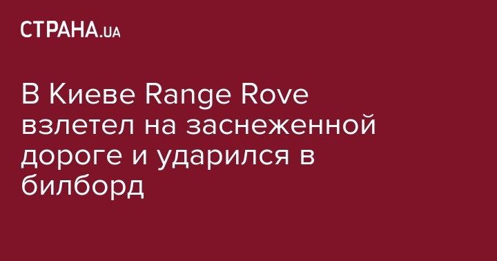 В Киеве Range Rove взлетел на заснеженной дороге и ударился в билборд