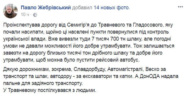 Жебривский узнал о главной проблеме двух возвращенных под контроль Украины поселков в зоне АТО
