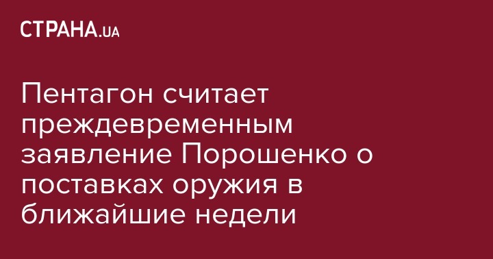 В Минобороны США считают преждевременным заявления президента Петра Порошенко о поставках американского оружия в ближайшие недели.