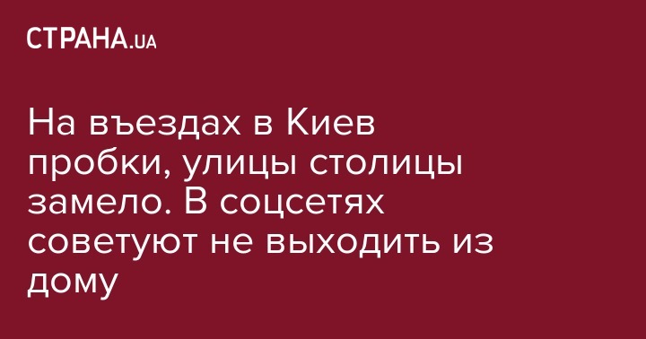 На въездах в Киев пробки, улицы столицы замело. В соцсетях советуют не выходить из дому