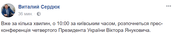11:35  Сердюк после пресс-конференции обещает опубликовать текст обращения Януковича к Путину.
