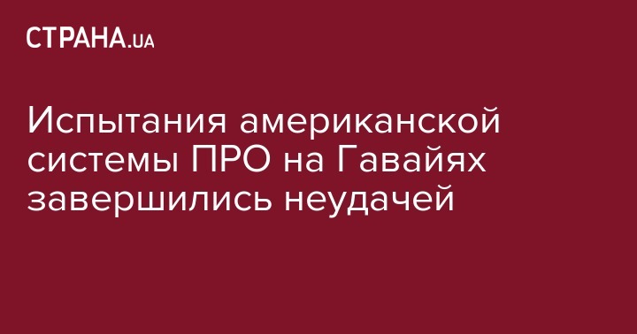 Гавайские испытания американской системы противоракетной обороны (ПРО) завершились неудачно. В Пентагоне выясняют причину провала. Об этом сообщает CNN.