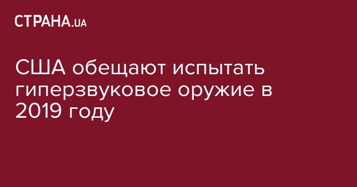 США обещают испытать гиперзвуковое оружие в 2019 году