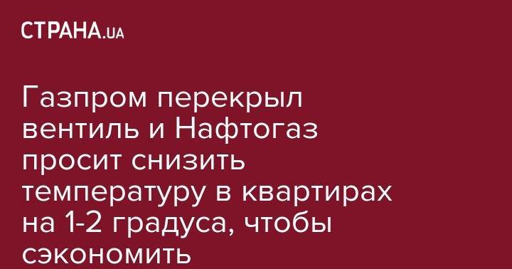Газпром перекрыл вентиль и Нафтогаз просит снизить температуру в квартирах на 1-2 градуса, чтобы сэкономить