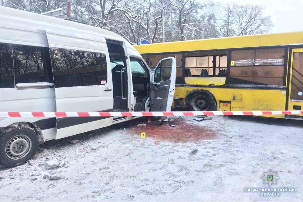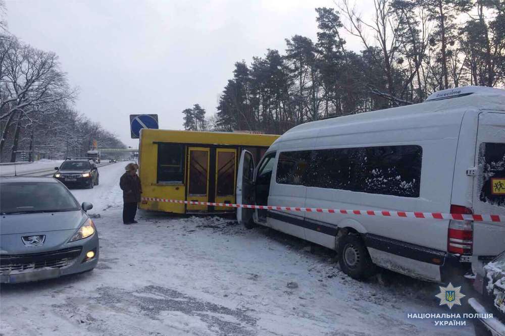 На месте происшествия следственно-оперативная группа Главка киевской полиции предварительно установила: "МАЗ" осуществлял разворот в направлении города, не предоставил преимущество в движении микроавтобусу - и произошло столкновение. В результате аварии водитель и два пассажира маршрутного такси получили травмы, "скорая" доставила их в больницу.