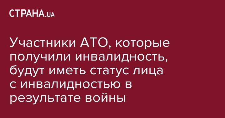 Также участники АТО с инвалидностью вследствие заболевания, полученного во время участия в операции, получат статус лица с инвалидностью вследствие войны.
