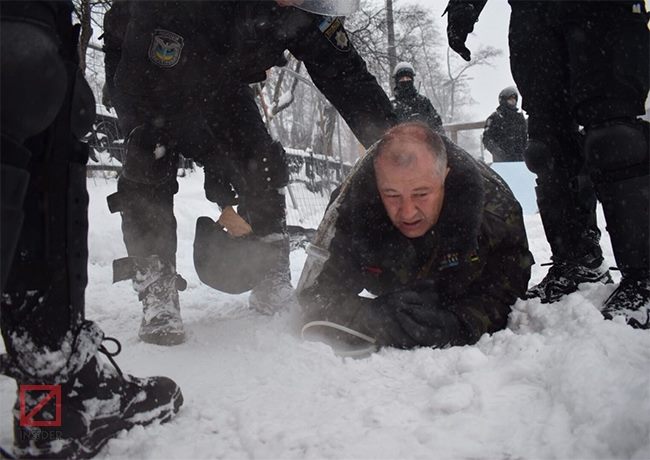 Как заявил советник начальника Главного управления Национальной полиции Украины в Одесской области Руслан Форостяк, задержанных активистов поставили на колени в ряд, чтобы не укладывать лицом в снег, иначе бы они простудились. Об этом Форостяк написал на своей странице в Facebook.