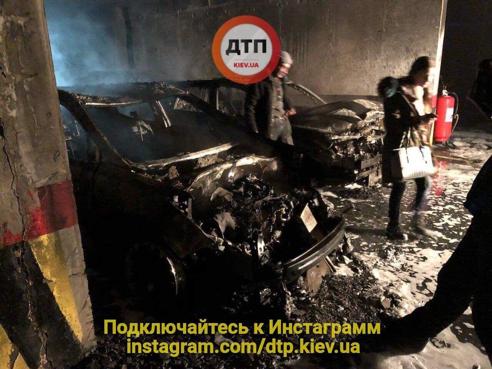 Как сообщала "Страна", в подземной парковке на Героев Сталинграда произошел пожар. Сперва загорелся автомобиль Range Rover, затем огонь перекинулся на стоящий автомобиль Land Rover.