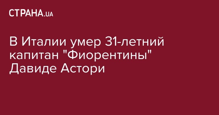 В Удине в возрасте 31 года скончался итальянский футболист "Фиорентины" Давиде Астори. Об этом сообщает пресс-служба клуба на своей странице в Twitter.