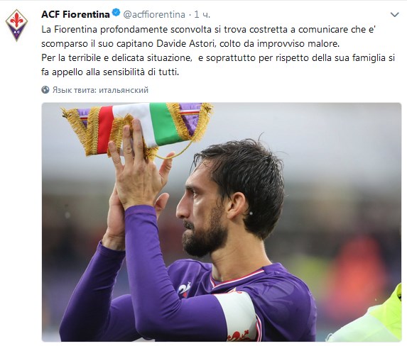 В свою очередь, ФИФА выразила соболезнования в связи со смертью капитана "Фиорентины" Давиде Астори.