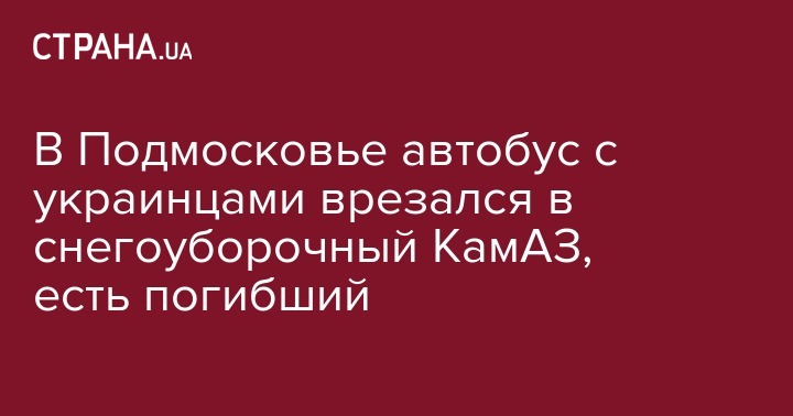 В Чеховском районе Подмосковья рейсовый автобус с украинцами попал в ДТП с участием снегоуборочной машины КамАЗ. Один человек погиб и трое пострадали. Об этом сообщает ТАСС.