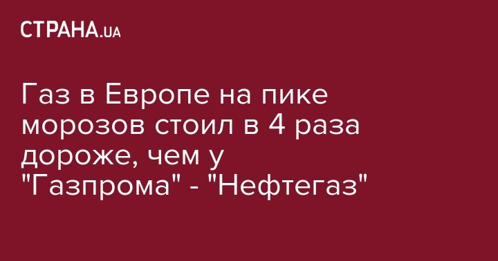 Газ в Европе на пике морозов стоил в 4 раза дороже, чем у "Газпрома" - "Нефтегаз"