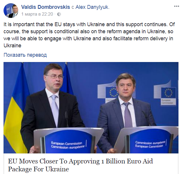 В феврале 2018 министр финансов Александр Данилюк заявил, что Европейская комиссия утвердила новую программу макрофинансовой помощи Украине.
