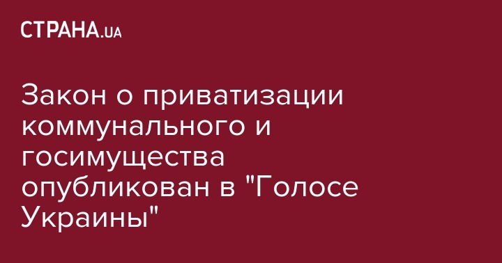 Во вторник, 6 марта, в официальной газете Верховной Рады "Голос Украины" опубликовали закон "О приватизации государственного и коммунального имущества", который вступит в силу завтра.