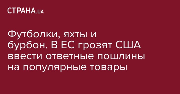 В частности, 25%-ной пошлиной могут быть обложены футболки, джинсы и косметика, мотоциклы и яхты. Кроме того, упоминаются сельхозтовары и переработанная сельскохозяйственная продукция: рис, кукуруза, апельсиновый сок, клюква, а также бурбон и табачная продукцию, совокупный импорт которой составляет около 951 млн евро. Также пошлины могут коснуться стали и других промышленных товаров.