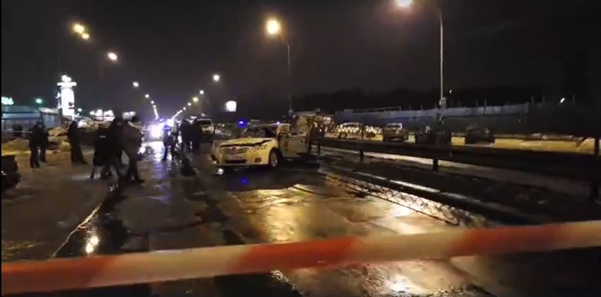 В Киеве на Броварском проспекте возле станции метро "Лесная" были взорваны две гранаты, в результате чего сгорел автомобиль Toyota Camry и пострадали люди.