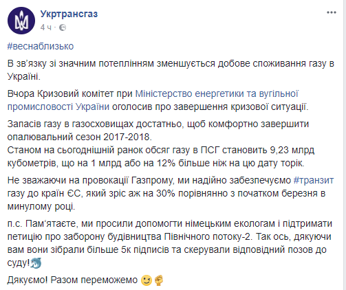 В марте на 30% увеличился транзит российского газа в страны ЕС по сравнению с аналогичным периодом 2017 года. Об этом 7 марта, сообщил ПАО Укртрансгаз на своей странице в соцсети Facebook.
