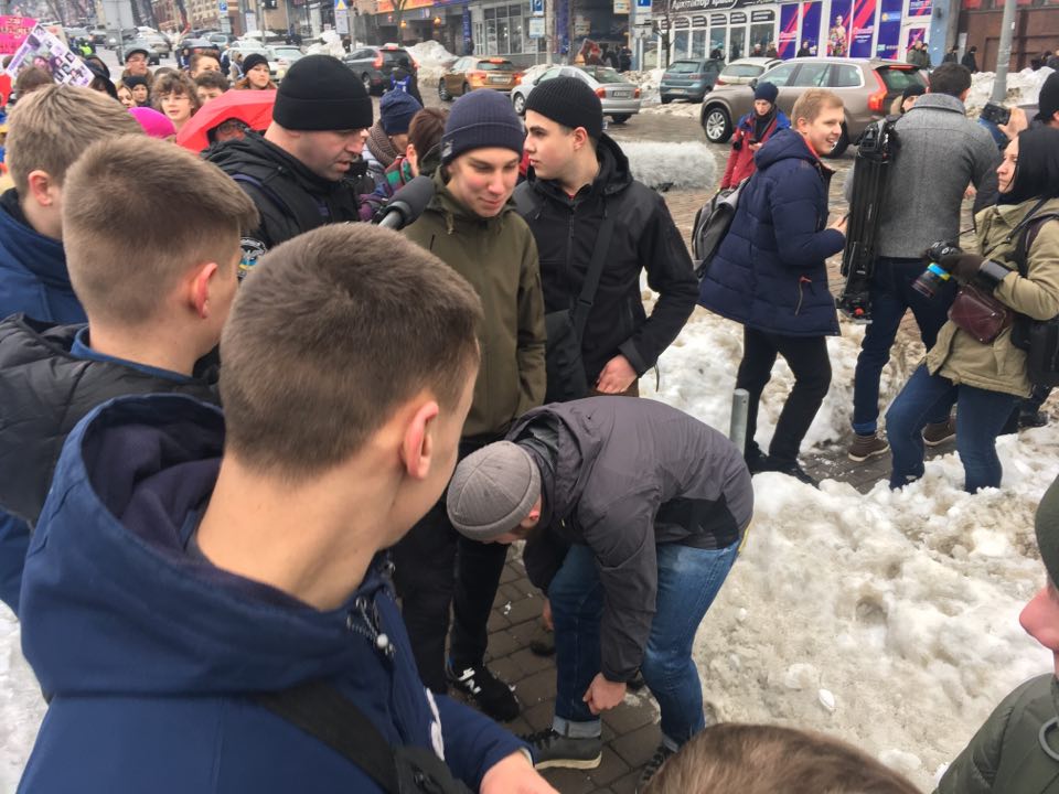 Несколько сотен протестующих идут по маршруту Михайловская площадь - улица Владимирская - улица Льва Толстого - здание КГГА на Крещатике.