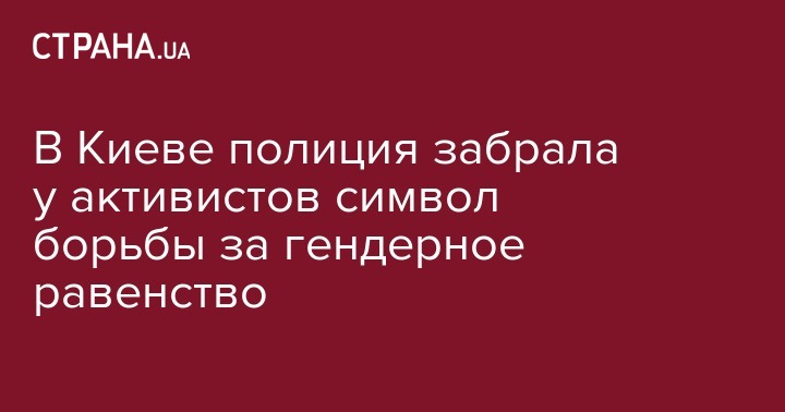 На площади у КГГА полиция забрала у активистов плакат, символизирующий борьбу украинских женщин за равные права. Копы не объяснили причины конфискации, но, вероятно, это связано с гербом Украины на плакате.