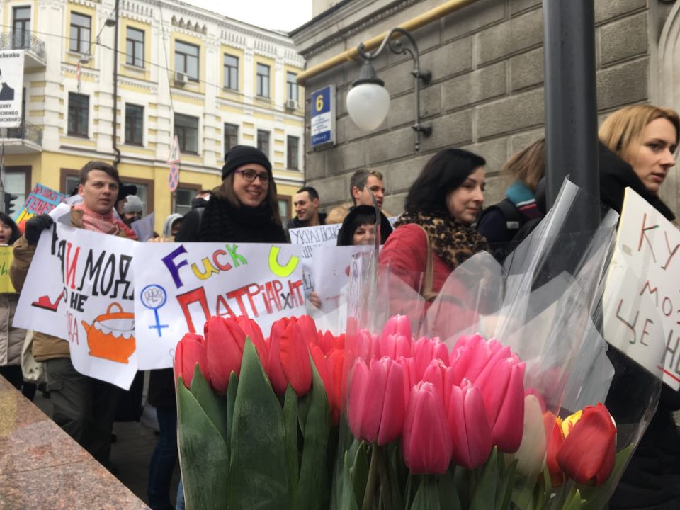 К слову, именно за это данный плакат не понравился националистам, которые также присутствовали на марше, но в знак протеста против феминисток.
