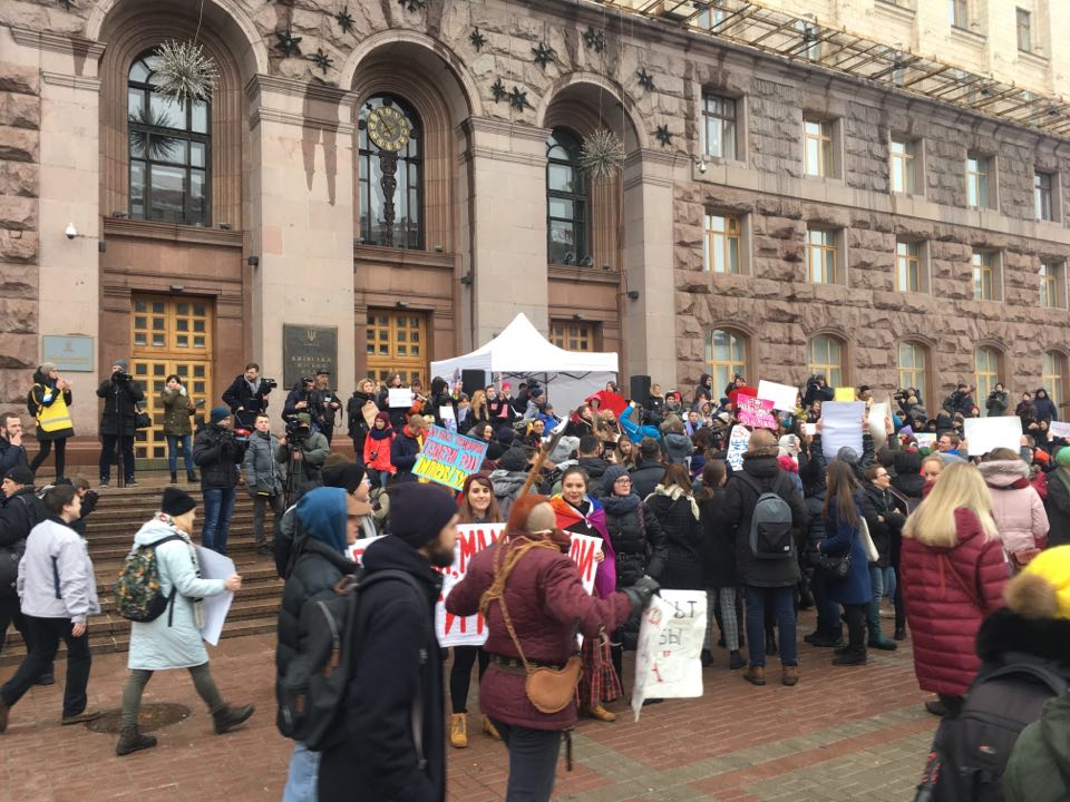 Марш прошел по маршруту: Михайловская площадь - улица Владимирская - улица Льва Толстого - здание КГГА на Крещатике.