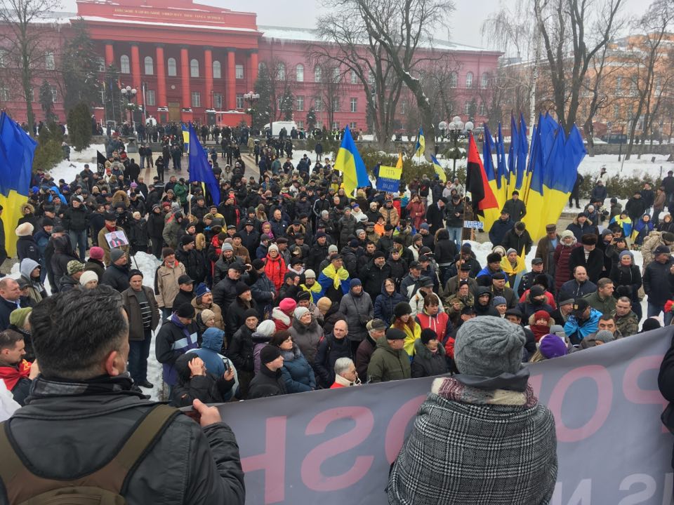 С утра у памятника уже митингуют несколко сотен активистов МихоМайдана, которые хотят встретиться с Порошенко и попросить его уйти в отставку.