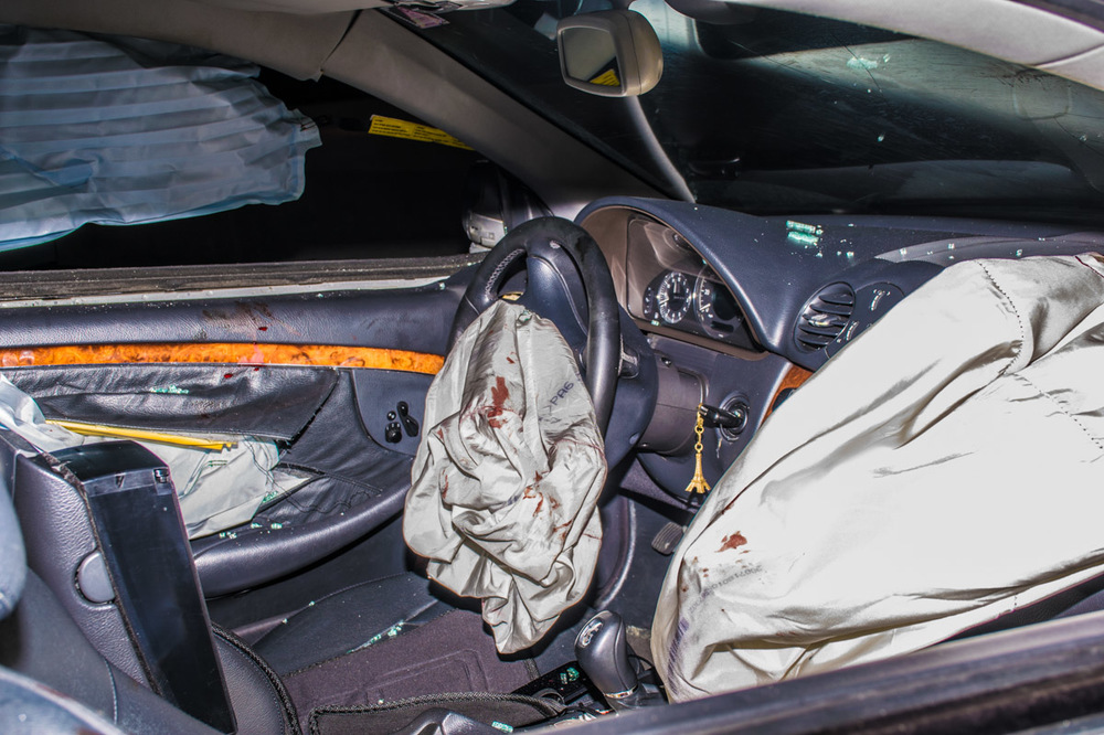 Авария случилась около 23:00. Со слов свидетелей, вверх по Владимирскому спуску на большой скорости поднимался серый Mercedes на еврономерах. Авто носило по всей дороге. Через мгновение они увидели, как машину понесло боком и он врезался в черный Mercedes, спускавшийся по Владимирскому спуску. Затем серый автомобиль начал крутиться на мокрой брусчатке и он водительской стороной влетел в Renault Kangoo.