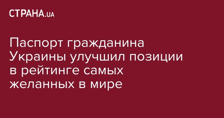 Украину выделяют среди пяти государств, которые значительно улучшили свои позиции по сравнению с прошлым годом. В первую пятерку рейтинга вошли Люксембург, Ирландия, Швейцария, Португалия и Швеция. Россия оказалась на 87-м месте, Беларусь – на 127-м, Молдова – на 90-е, Грузия – 96-е. Паспорт США – на 35-м месте. Замыкают список Ливия, Йемен, Эритрея, Ирак и Афганистан.