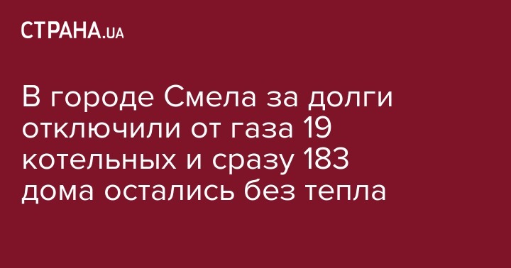В Смеле Черкасской области из-за задолженностей без газоснабжения осталось 19 котельных, обеспечивающих теплоснабжением 183 дома с населением 9 тысяч 408 человек. \