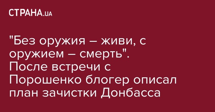 "Без оружия – живи, с оружием – смерть". После встречи с Порошенко блогер описал план зачистки Донбасса