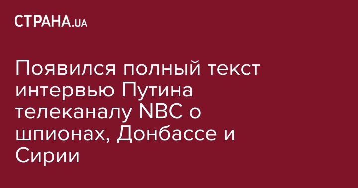 В интервью американскому телеканалу NBC Владимир Путин рассказал об отношениях России и США, ситуации в Сирии, положении на Донбассе и многом другом.